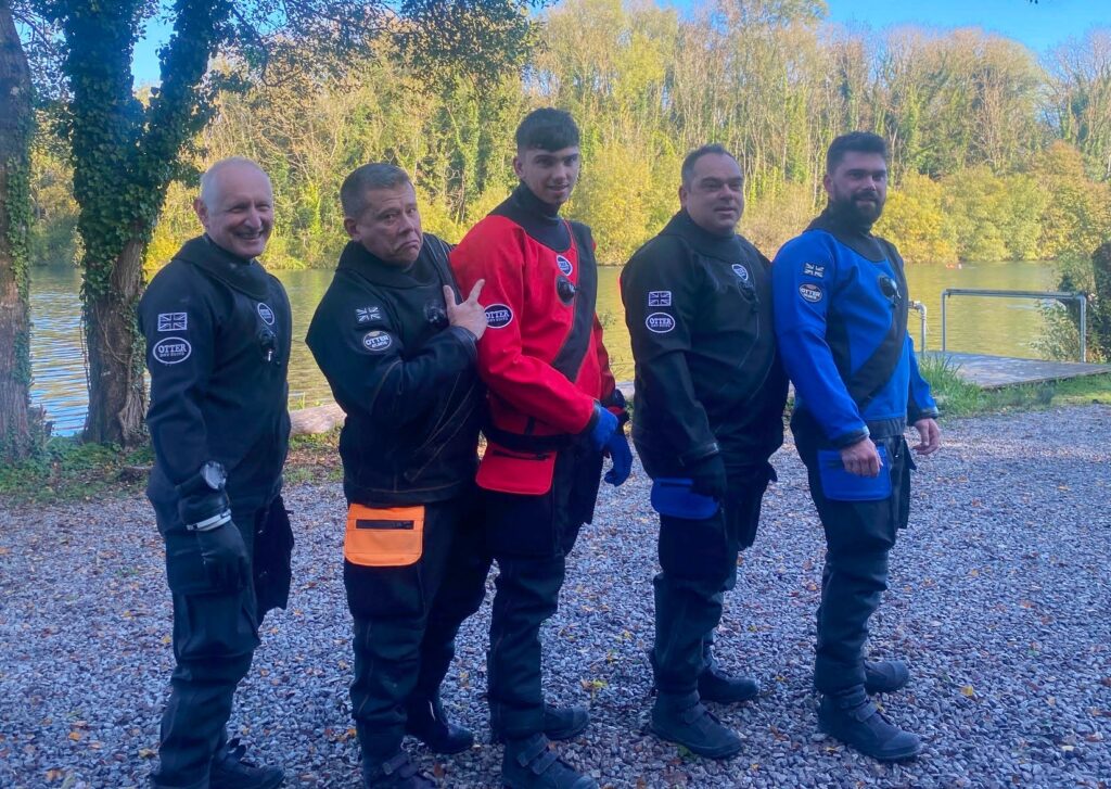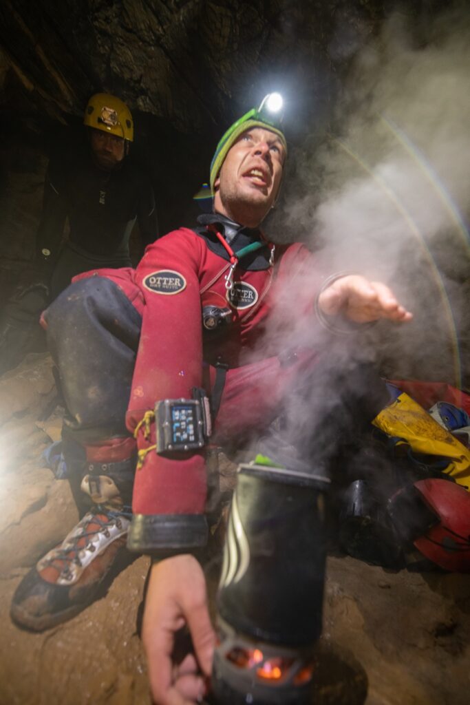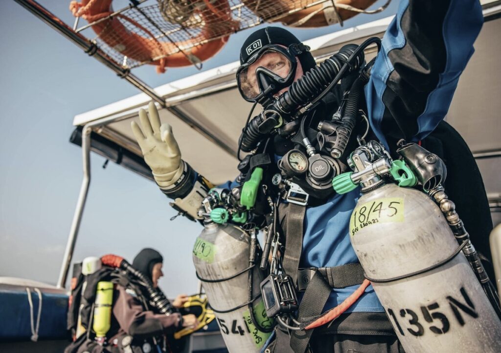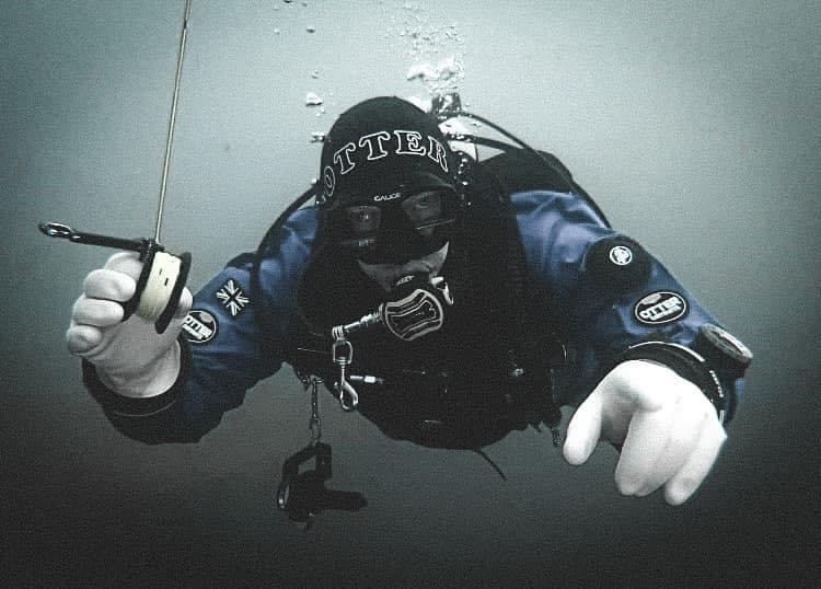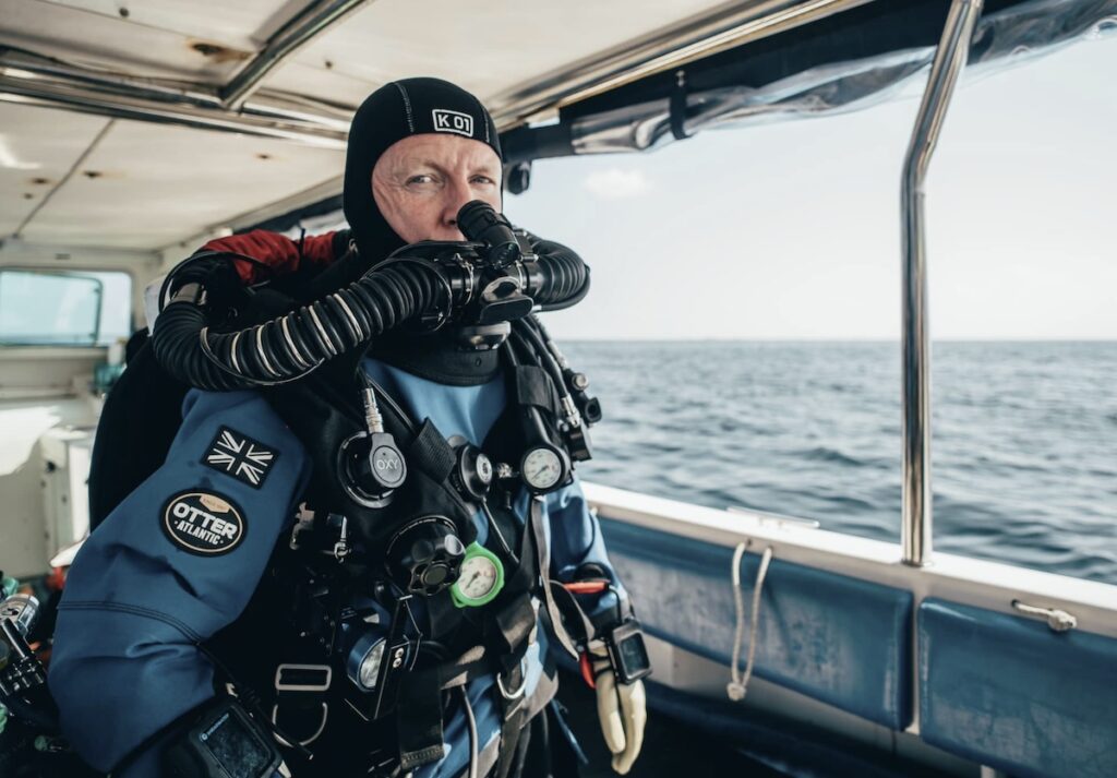 Diver Andrew Donn hanging after a dive to Lusitania - Andrew Donn