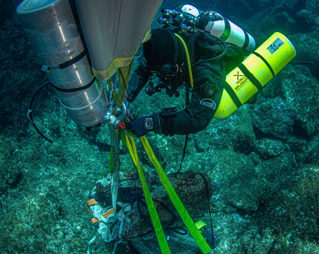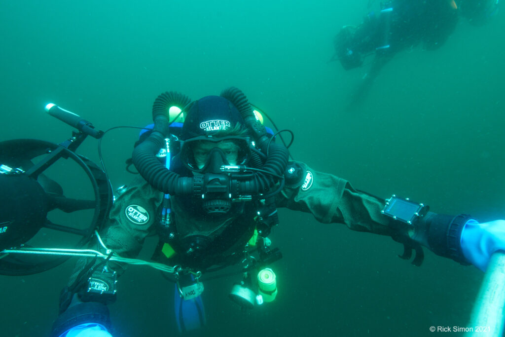 Diver Rick Simon hanging after a dive to Lusitania - Joe St. Amand